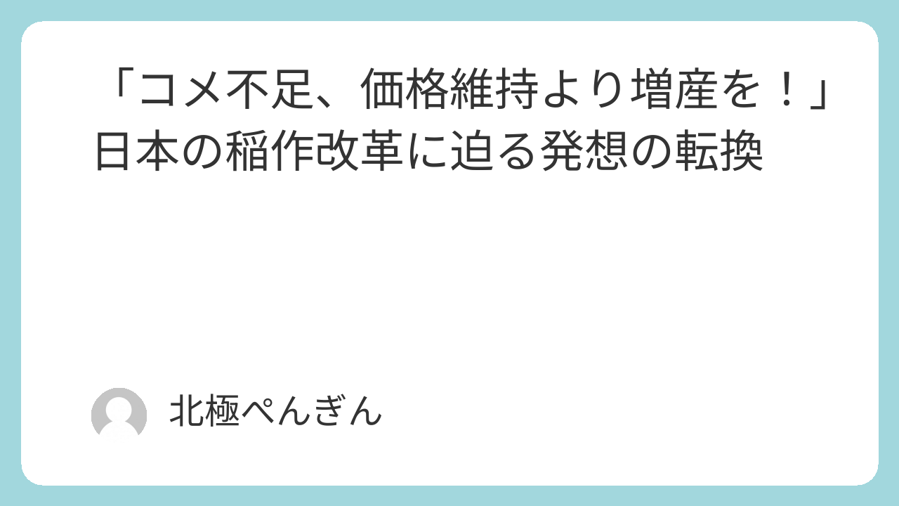 - タイトル:「コメ不足、価格維持より増産を」_専門家が訴える稲作改革3分解説