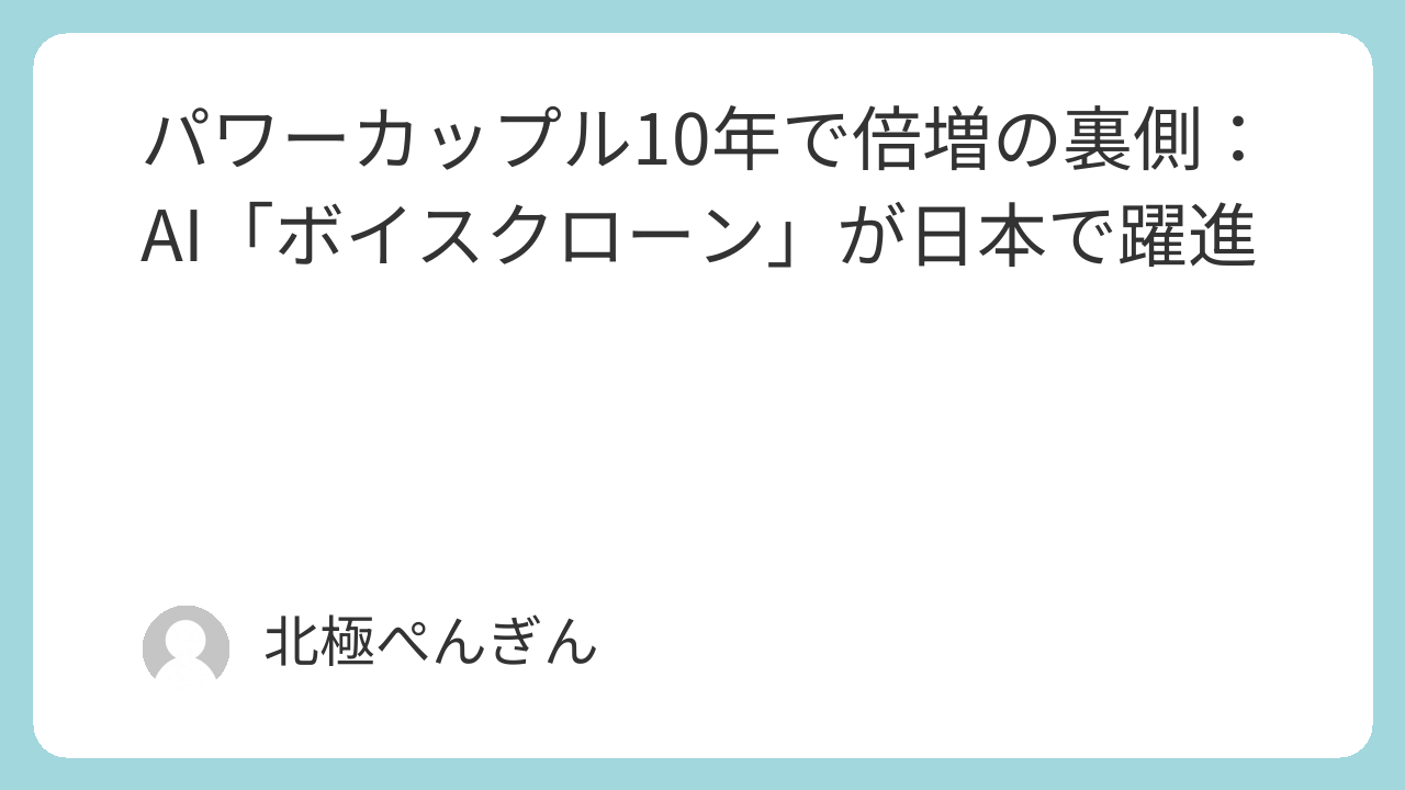- タイトル:パワーカップル 10年で倍増も3%、音声生成AI「ボイスクローン」日本で存在感