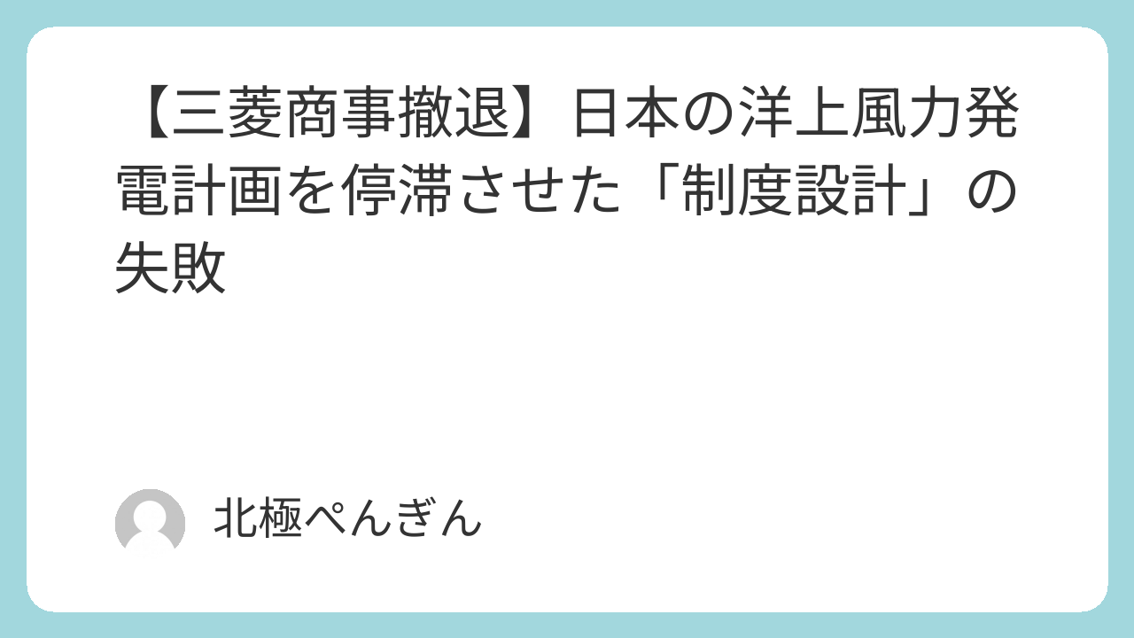 - タイトル:三菱商事の洋上風力発電撤退、日本の再生可能エネルギー推進にも逆風