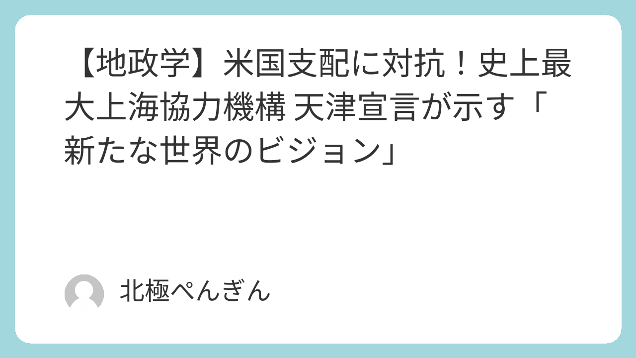 中国天津で開幕した上海協力機構(SCO)首脳会議には、インド、ロシア、イランなど20を超える国の首脳が一堂に集結しました。これは、欧米の報道が伝えない「世界人口の半分」側の主張が、いよいよ国際秩序の表舞台に立ったことを示します。