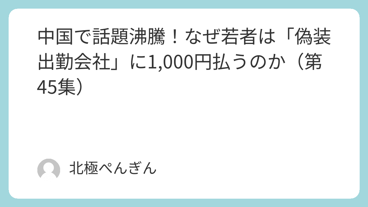 - タイトル:第45集 北京で話題 「偽装出勤会社」って何?