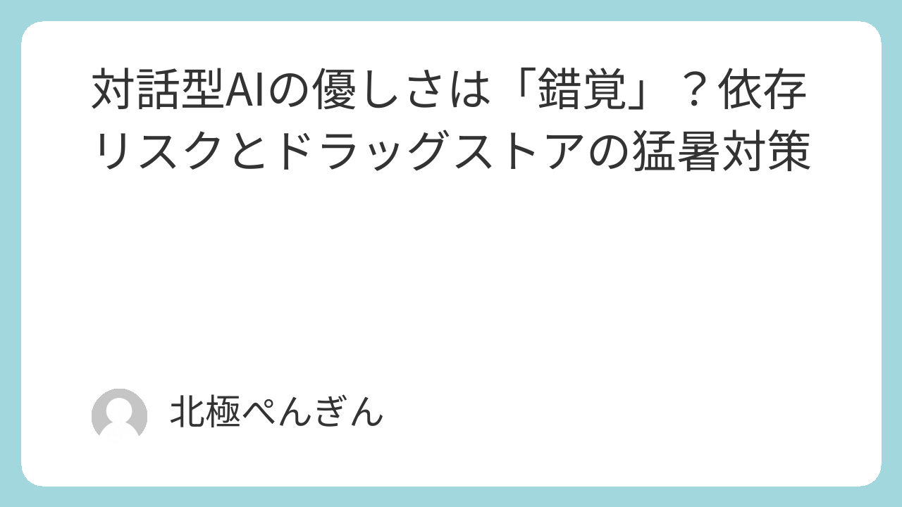 - タイトル:対話型AIの優しさは「錯覚」 感情移入で依存、ドラッグストア猛暑グッズ 10月まで熱戦