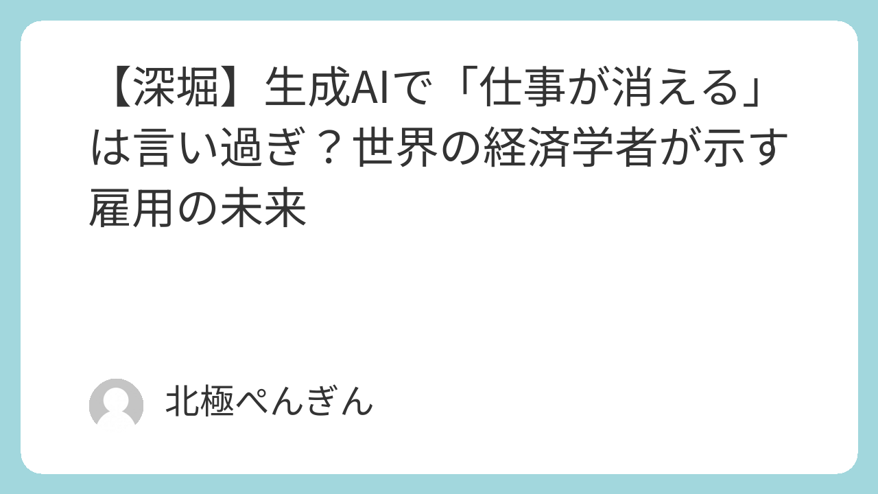 - タイトル:生成AIで仕事が消えるは言い過ぎ?。世界の経済学者はこう考える