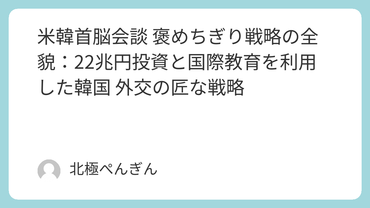 米韓首脳会談 褒めちぎり戦略の全貌:22兆円投資と国際教育を利用した韓国 外交の匠な戦略