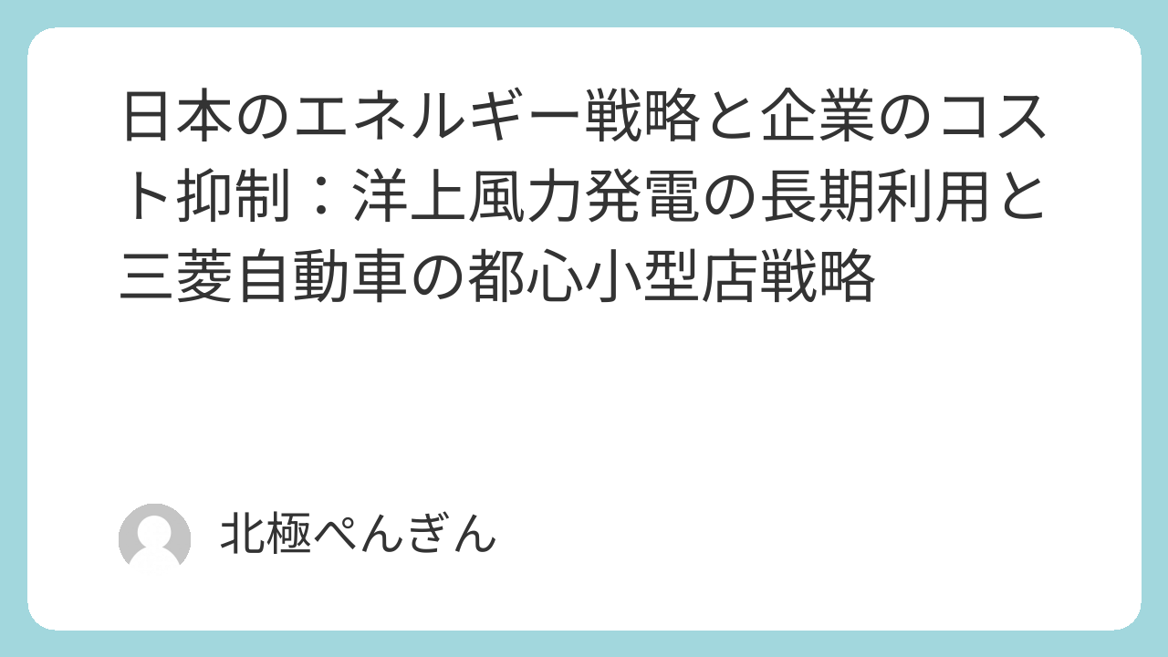 日本のエネルギー戦略と企業のコスト抑制:洋上風力発電の長期利用と三菱自動車の都心小型店戦略