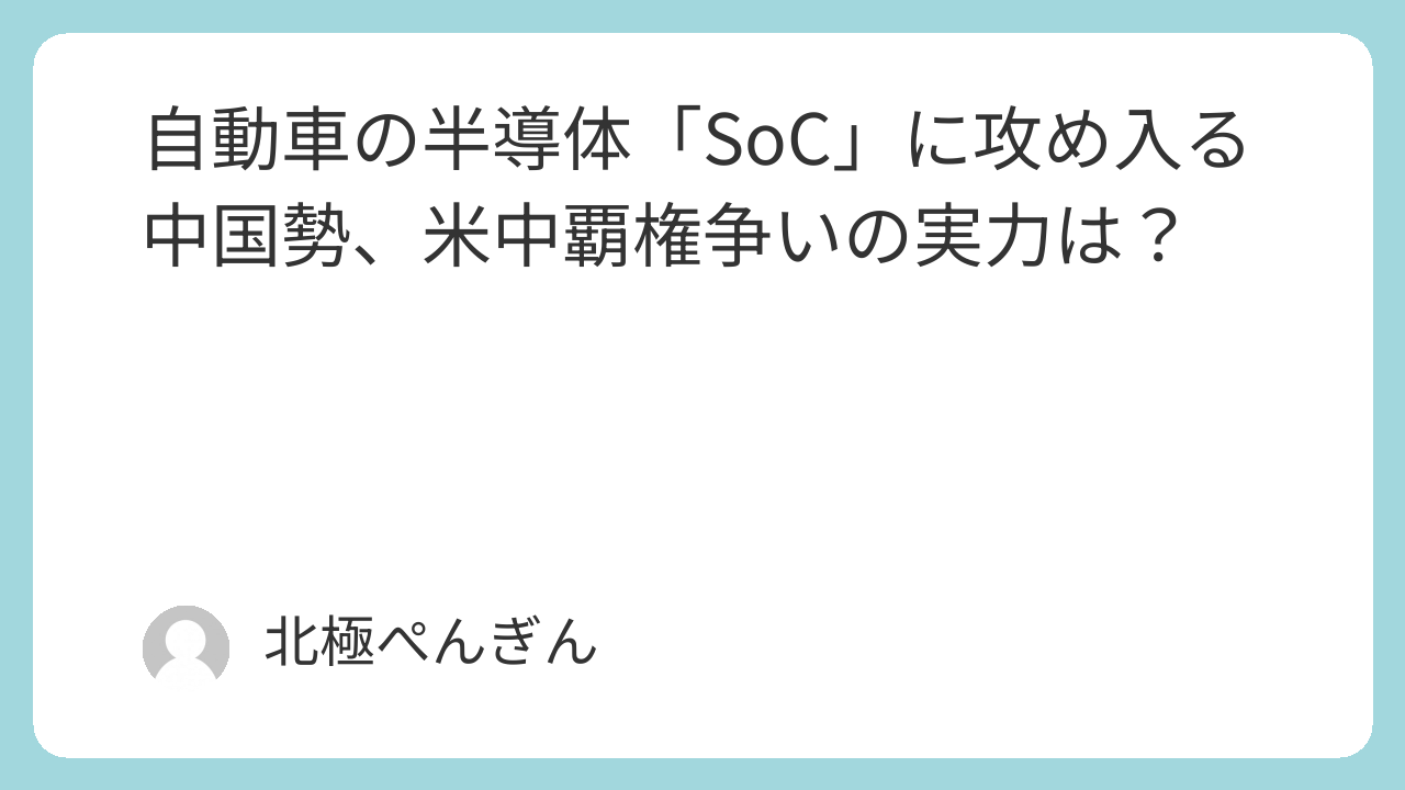- タイトル:自動車の半導体「SoC」に攻め入る中国勢、その実力は?3分解説【NIKKEI_Tech_Foresight_×_NIKKEI_PODCAST】