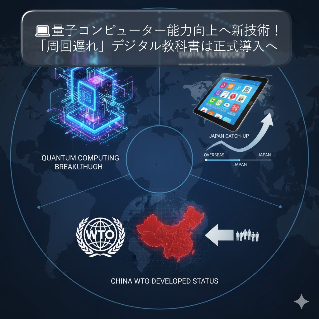 一方、教育現場では、デジタル教科書が正式な教科書として認められるという大きな一歩を踏み出しましたが、海外に比べると「周回遅れ」との指摘もあります。さらに、世界貿易機関(WTO)では中国が途上国としての待遇を放棄する動きを見せ、国際的な秩序が変化しています。これらの最新ニュースを詳しく解説し、私たちの未来の社会や生活への影響を深掘りしていきます!