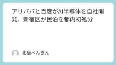 AI・テクノロジー アリババと百度がAI半導体を自社開発、新宿区が民泊を都内初処分