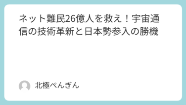 宇宙通信が世界で26億人のネット難民を救う可能性と、日本の広大な県外地域の解消、災害対策メリットを解説。SpaceXがリードする世界の勢力図と日本勢の参入戦略を深掘りします。