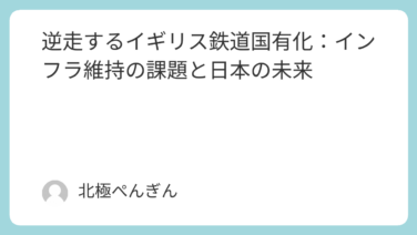 イギリス鉄道が30年ぶりに国有化された背景と、利益優先によるインフラ投資不足の実態を解説。この動きが日本の人口減少・高齢化社会におけるインフラ維持の課題に与える教訓を深掘りします。