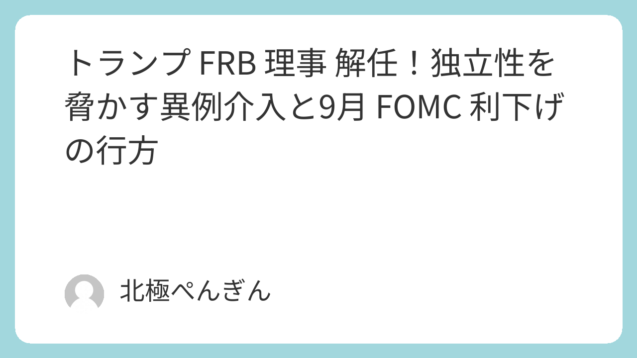 • タイトル:トランプ大統領、FRB理事を解任。独立性への懸念高まる